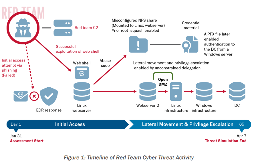 • The red team simulated real-world cyber attacks to test detection and response capabilities.