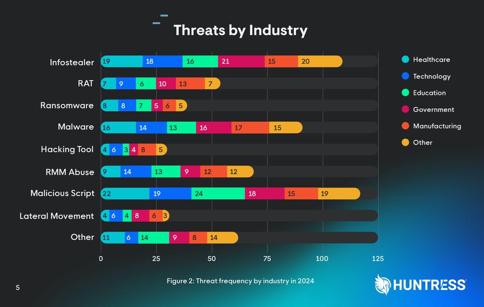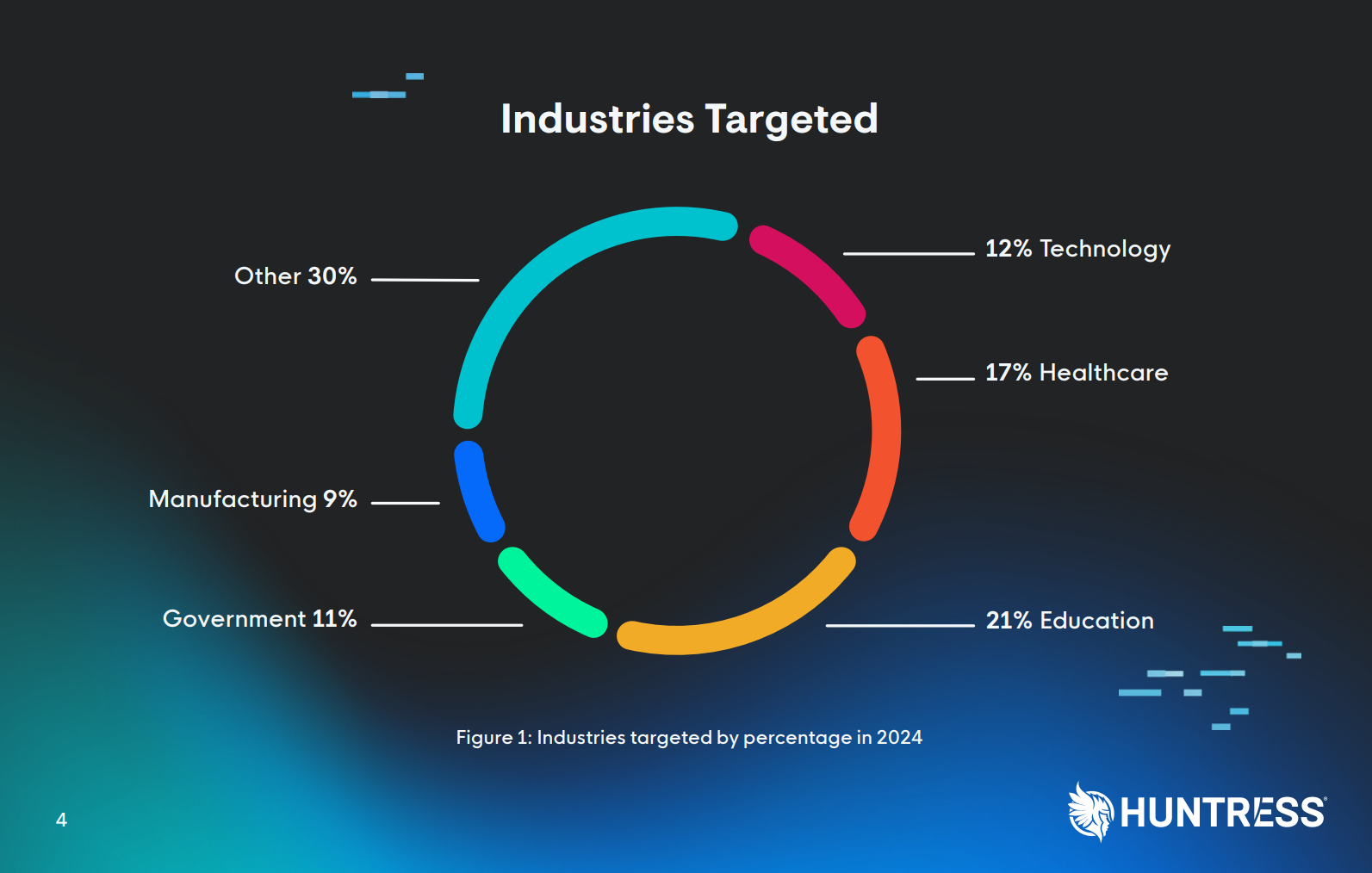 The healthcare industry has never been more connected, or more vulnerable. According to the Huntress 2025 Cyber Threat Report: Threats Targeting the Healthcare Sector, healthcare and education together accounted for nearly 38% of all cyber incidents in 2024. The message is loud and unsettling: attackers have found their favorite playground, and it’s full of PHI.