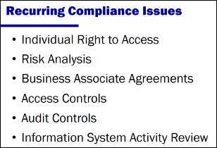 When OCR investigates, they look at the state of the HIPAA compliance program. They listed the compliance issues that they see recur most often… shown in the chart below.