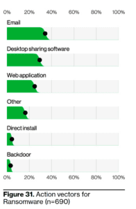 One more thing about ransomware, that again is not surprising, is that email tops the list of the #1 action vector that precipitated ransomware attacks. That’s the action someone took that triggered the ransomware attack. Desktop sharing software and web applications are up there too, but email… it’s the people, people.
