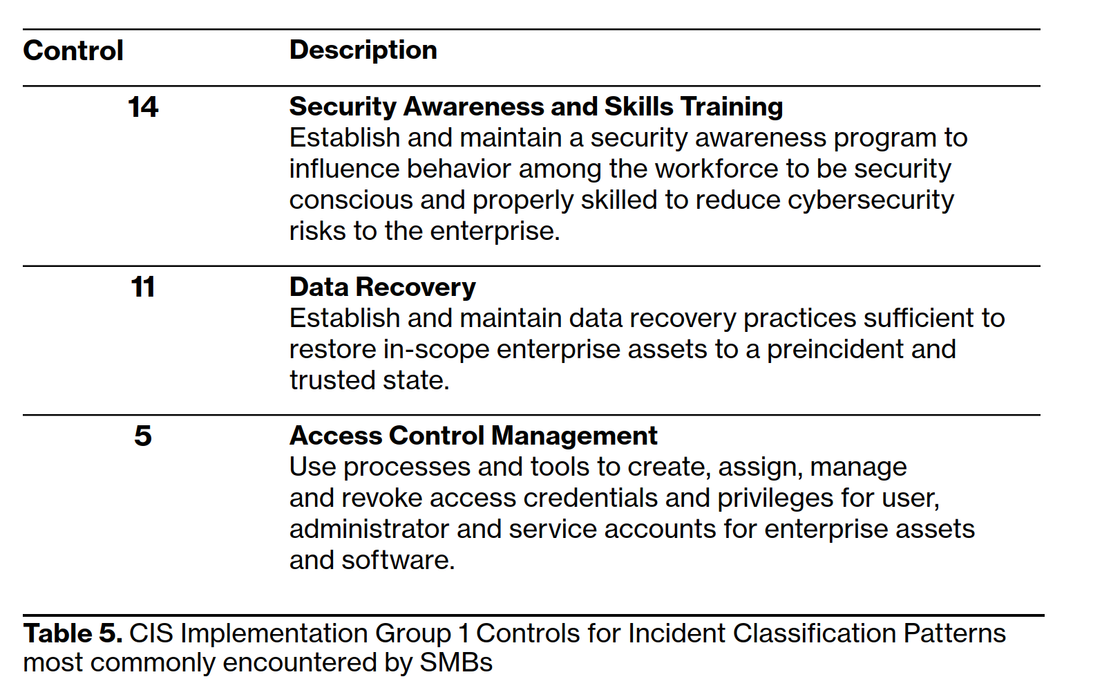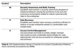 So, they recommend that if you are a SMB with limited resources for implementing security controls, start with the CIS control, control group 1, which consists of security awareness training, data recovery and access control management. The same things we talk about.